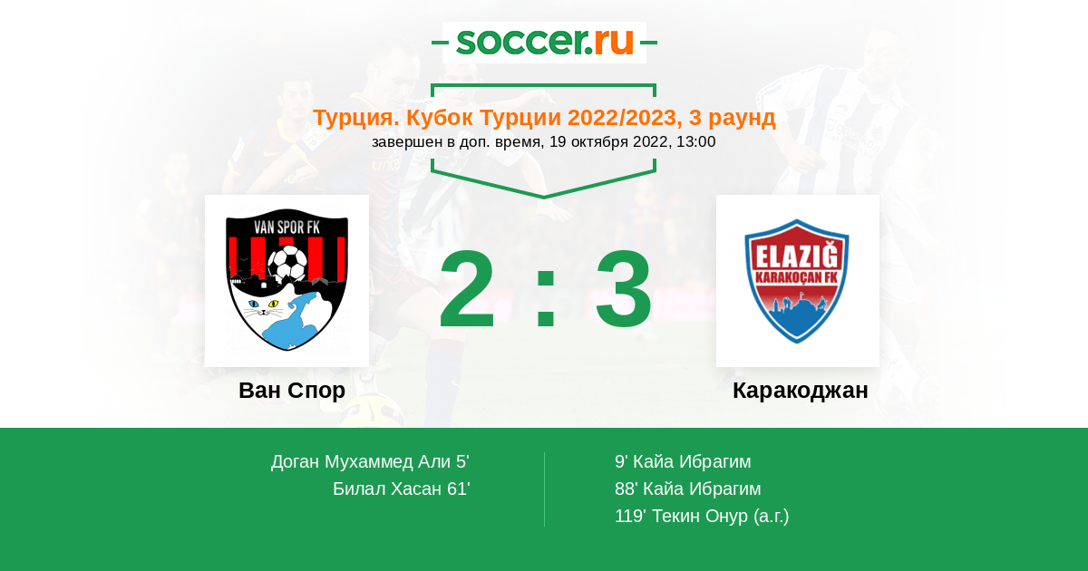 119' (2:3) Автогол Текин Онур (33)
