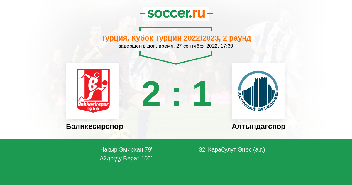 32' (0:1) Автогол Карабулут Энес (23)