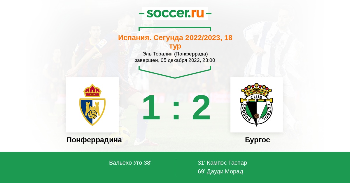 Я думаю что в этом противостоянии более чем явного фаворита на победу нет . Учитывая как играет команда гостей Бургос , может быть самый обычный матч с минимальным преимуществом команды гостей и один забитый мяч станет победным .