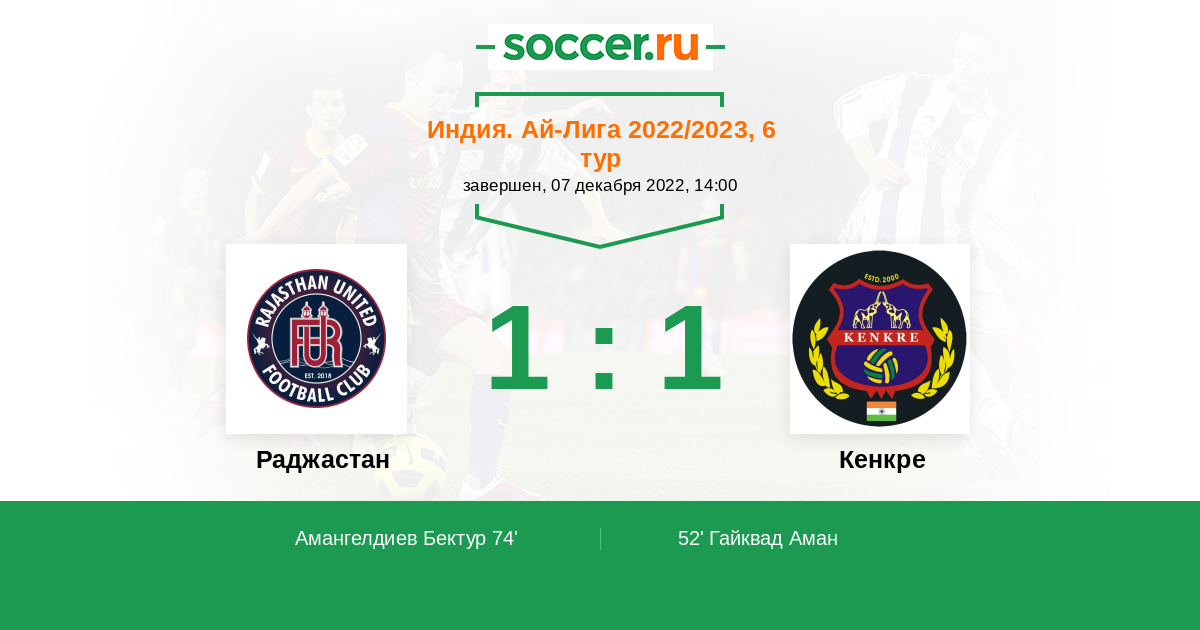 52' (0:1) Гайквад Аман (46) (Раджан Аравинрадж (77))