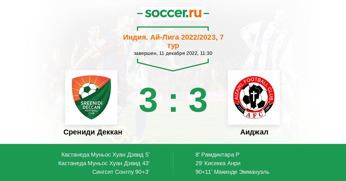 29' (1:2) Кисекка Анри (22) (Лалринфела К (10))