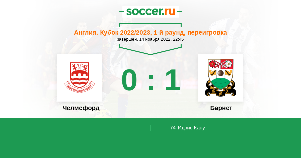 74' (0:1) Идрис Кану (11) (Де Хавилланд Райан (33))
