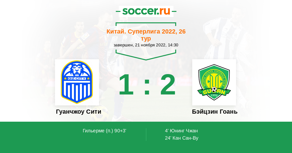 Запасные: 25 Куанбо Гуо, 14 Жоу Дехай, 18 Ким Тае-Ян, 19 Лю Хуан (с 90+1'), 38 Руан Килонг, 26 Бай Янг (с 69'), 3 Ю Янг, 32 Лю Губо, 43 Ши Юйчен, 37 Цао Юнцзин (с 79'), 29 Тиан Юда, 30 Дабро Марко