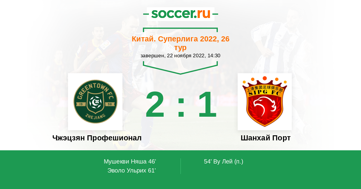 61' (2:1) Эволо Ульрих (7) (Ченг Джин (22))