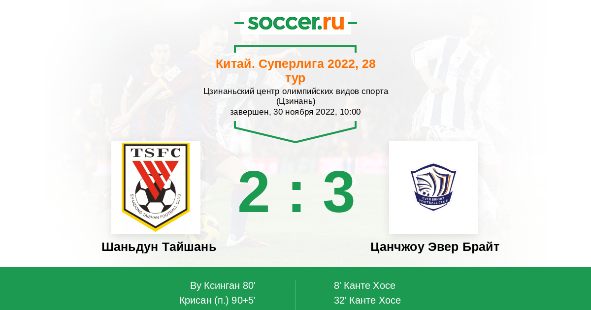 8' (0:1) Канте Хосе (45) (Као Хайкинг (3))