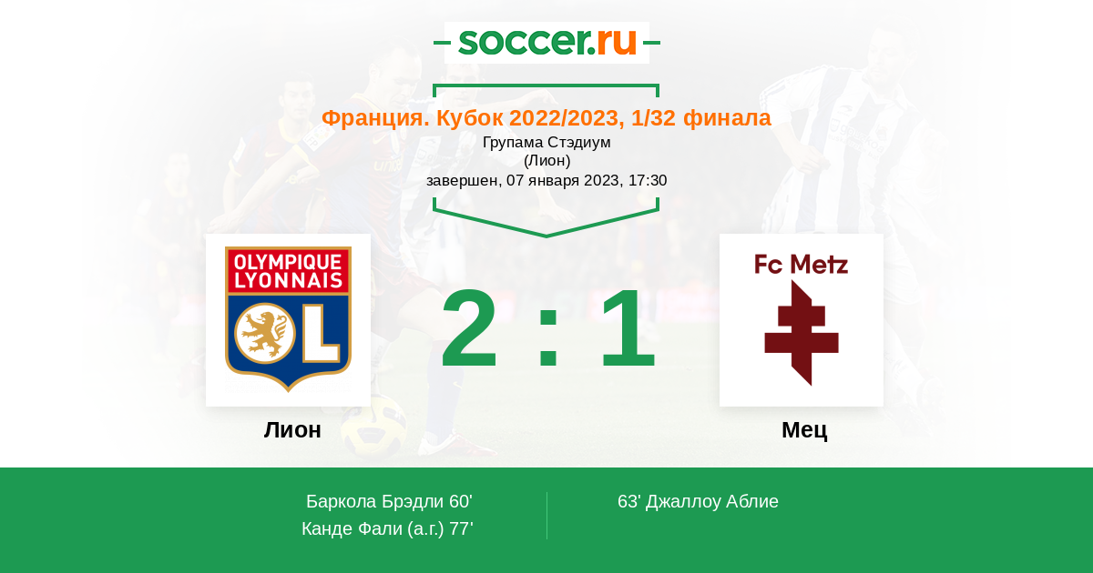 77' (2:1) Автогол Канде Фали (5)