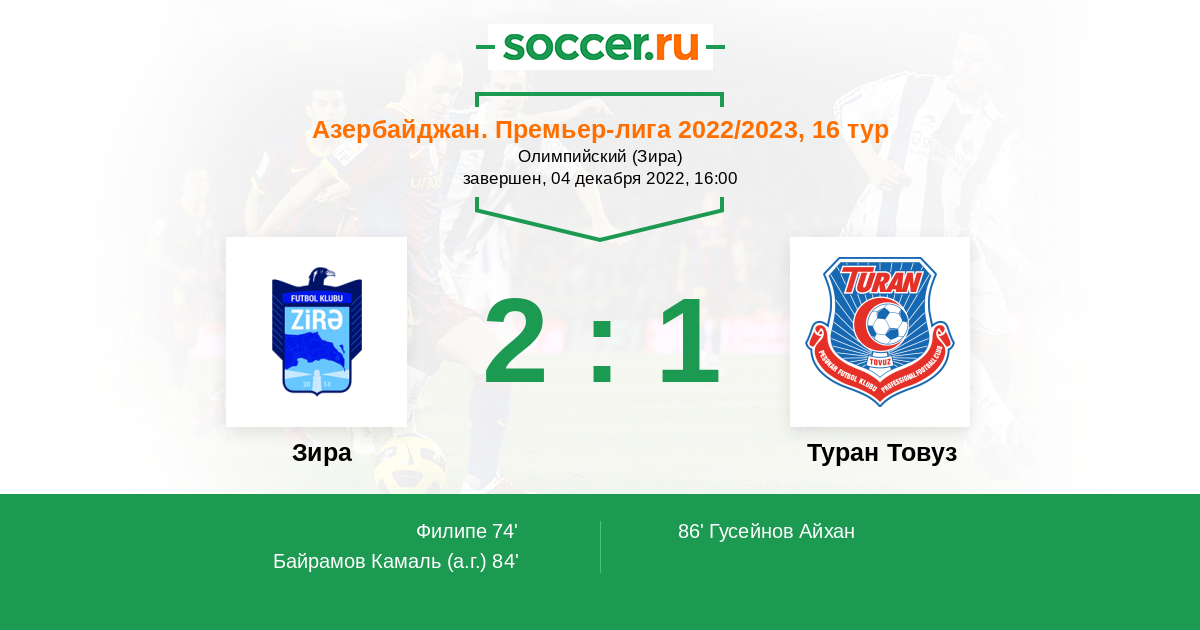 84' (2:0) Автогол Байрамов Камаль (85)