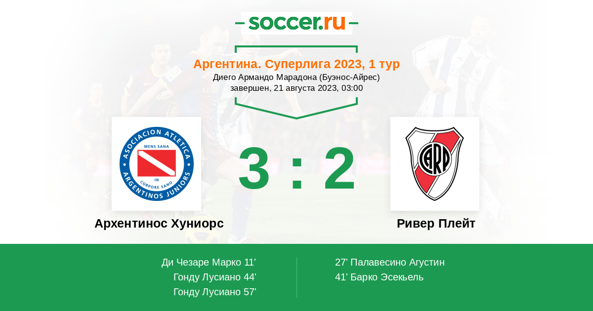 Запасные: 36 Солари Пабло (с 58'), 10 Лансини Мануэль (с 58'), 24 Перес Энцо (с 64'), 16 Колидио Факундо (с 65'), 25 Рондон Хосе Саломон (с 80'), 19 Эчеверри Клаудио, 15 Эррера Марсело, 31 Симон Сантьяго, 4 Майдана Хонатан, 6 Мартинес Эктор, 33 Сентурион Эсекиль