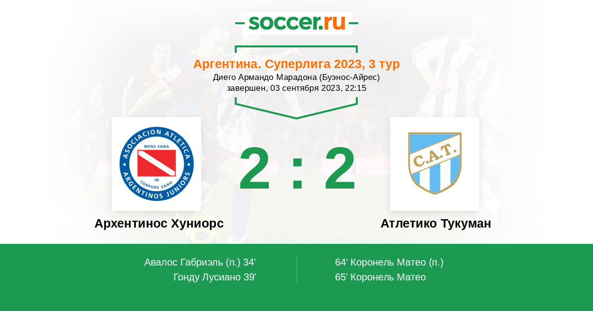 39' (2:0) Гонду Лусиано (32) (Монтиэль Сантьяго (18))