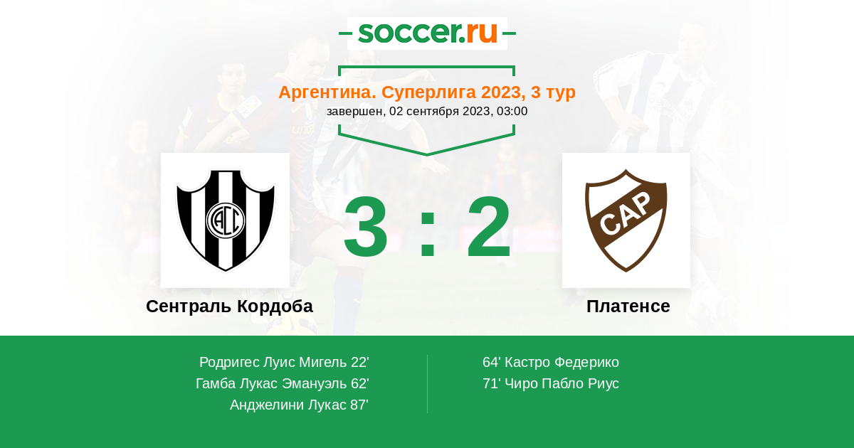 71' (2:2) Чиро Пабло Риус (21) (Окампо Агустин (10))