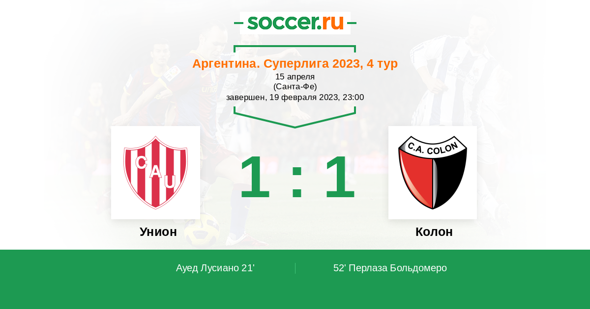 52' (1:1) Перлаза Больдомеро (14) (Абила Рамон (9))