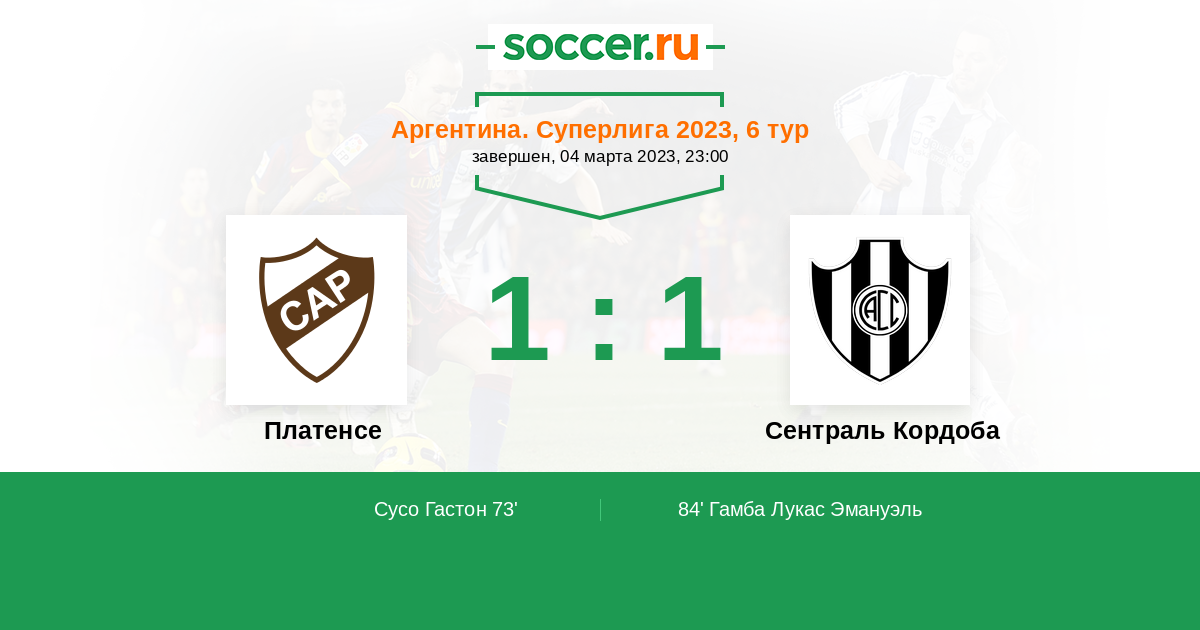 84' (1:1) Гамба Лукас Эмануэль (18) (Чиро Пабло Риус (12))