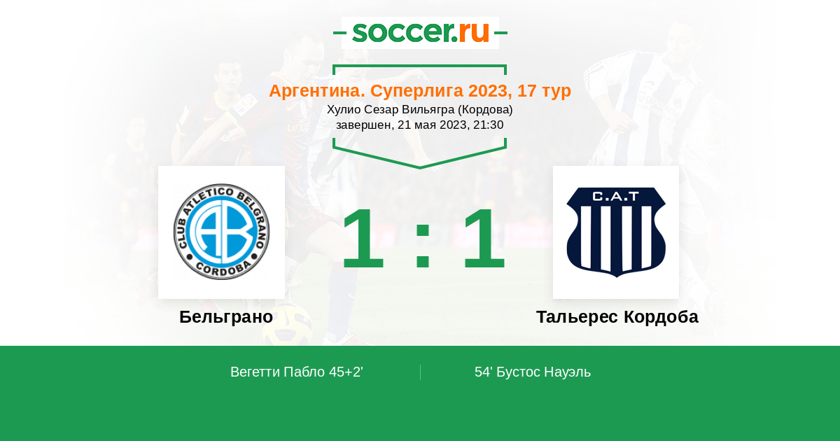 54' (1:1) Бустос Науэль (10) (Бенавидес Гастон (29))