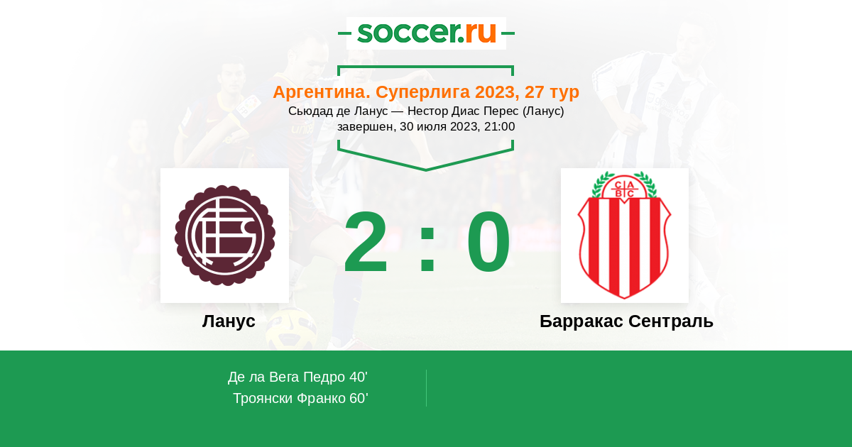 60' (2:0) Троянски Франко (20) (Диас Леандро (18))