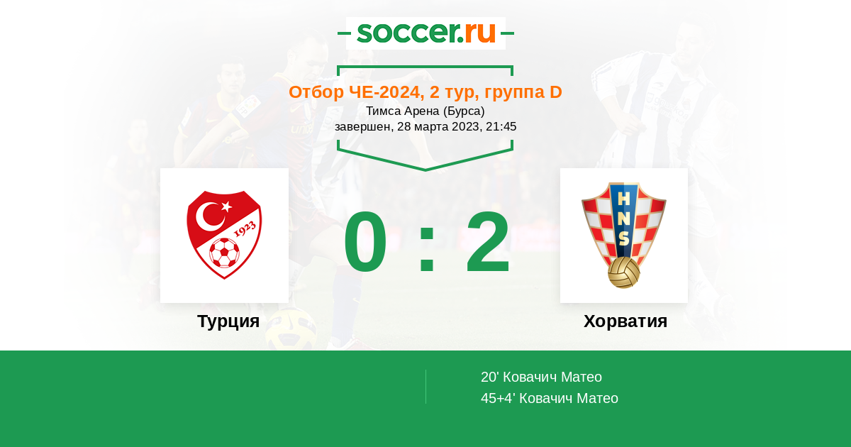20' (0:1) Ковачич Матео (8) (Пашалич Марио (15))