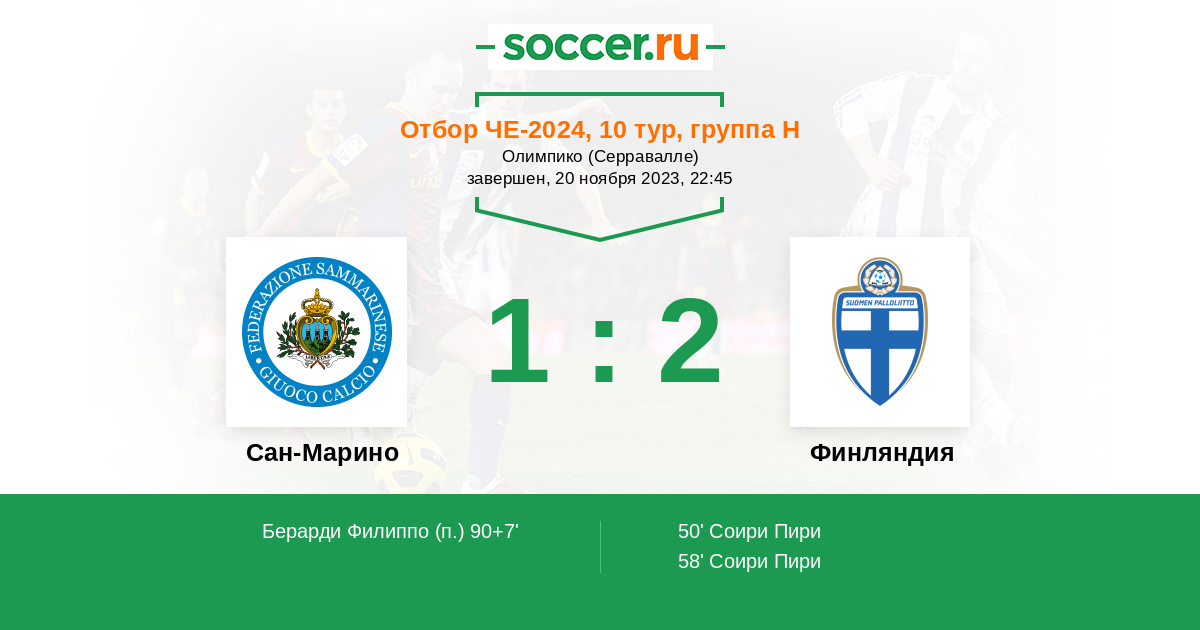 58' (0:2) Соири Пири (13) (Галвез Томас (16))