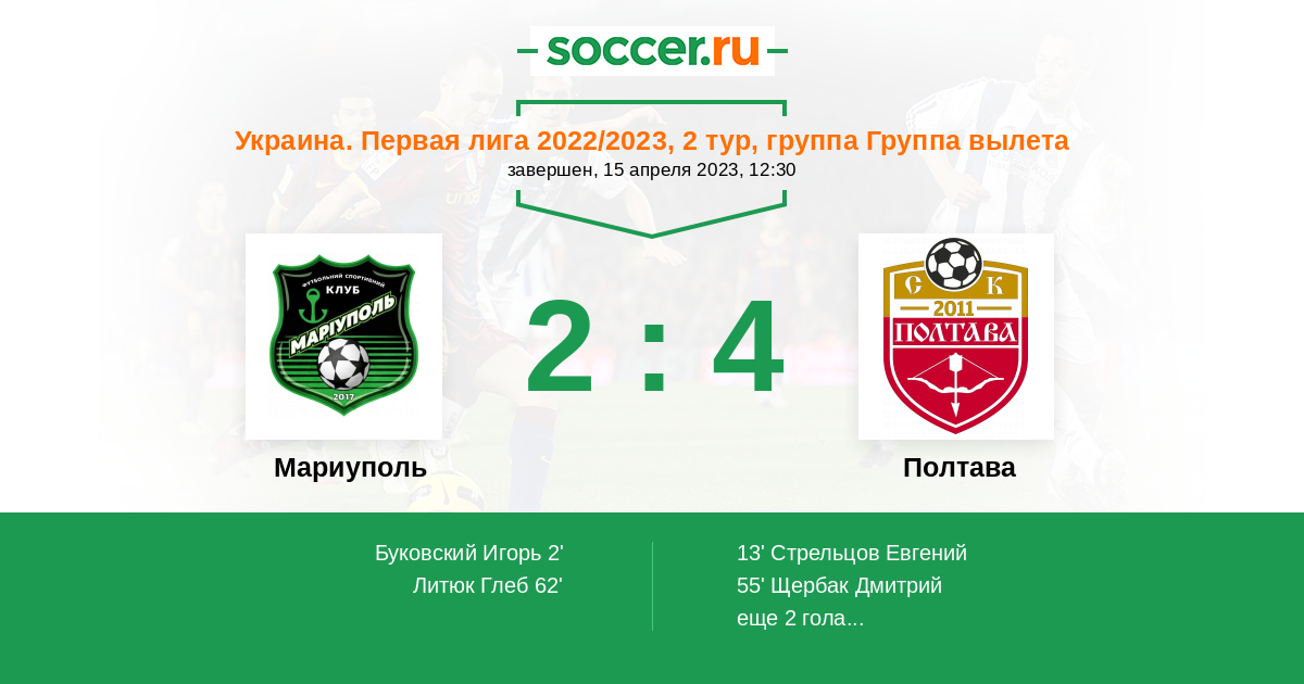 74' (2:4) Щербак Дмитрий