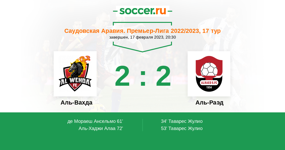 34' (0:1) Таварес Жулио (17) (Аль-Досери Мохаммед (32))