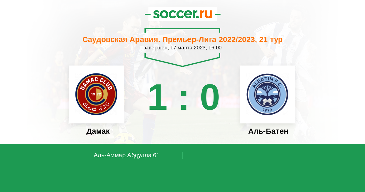 6' (1:0) Аль-Аммар Абдулла (13) (Махер Адам (6))