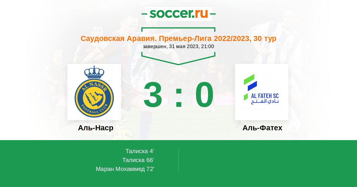 72' (3:0) Маран Мохаммед (16) (Талиска (94))