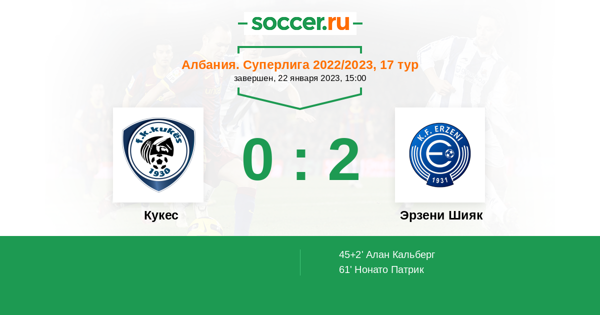 45+2' (0:1) Алан Кальберг
