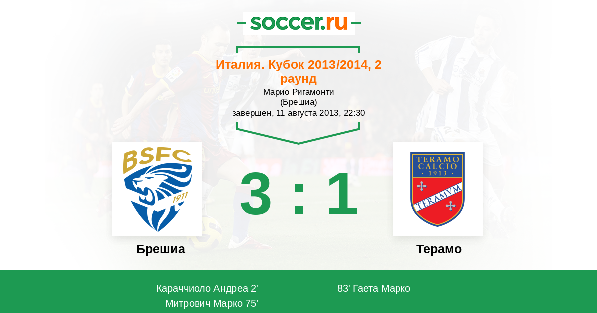 Запасные: Гаета Марко (с 60'), Сассано Пьерантонио (с 64'), Ченчарелли Диего (с 78'), Нардуццо Давиде