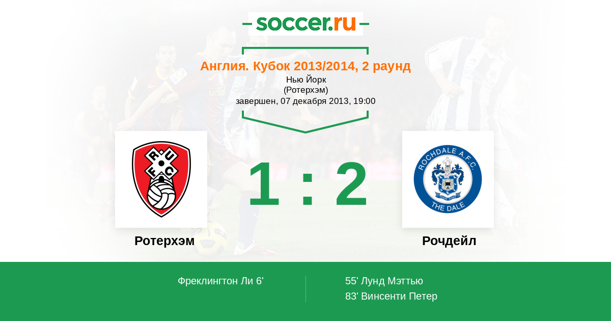 55' (1:1) Лунд Мэттью (12)