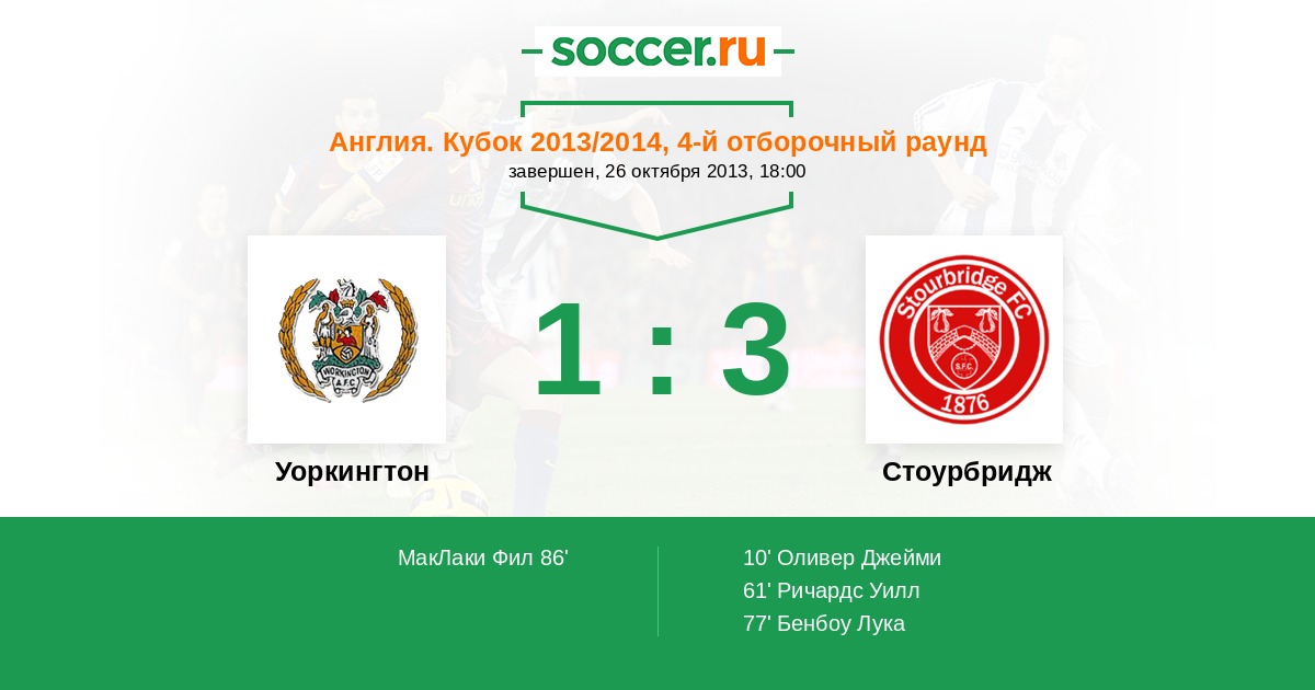 61' (0:2) Ричардс Уилл (3)