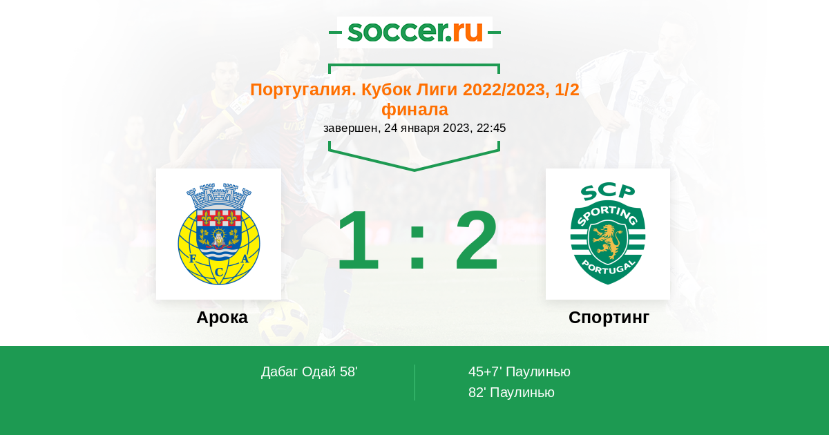 45+7' (0:1) Паулинью (20) (Гонсалвеш Педру (28))