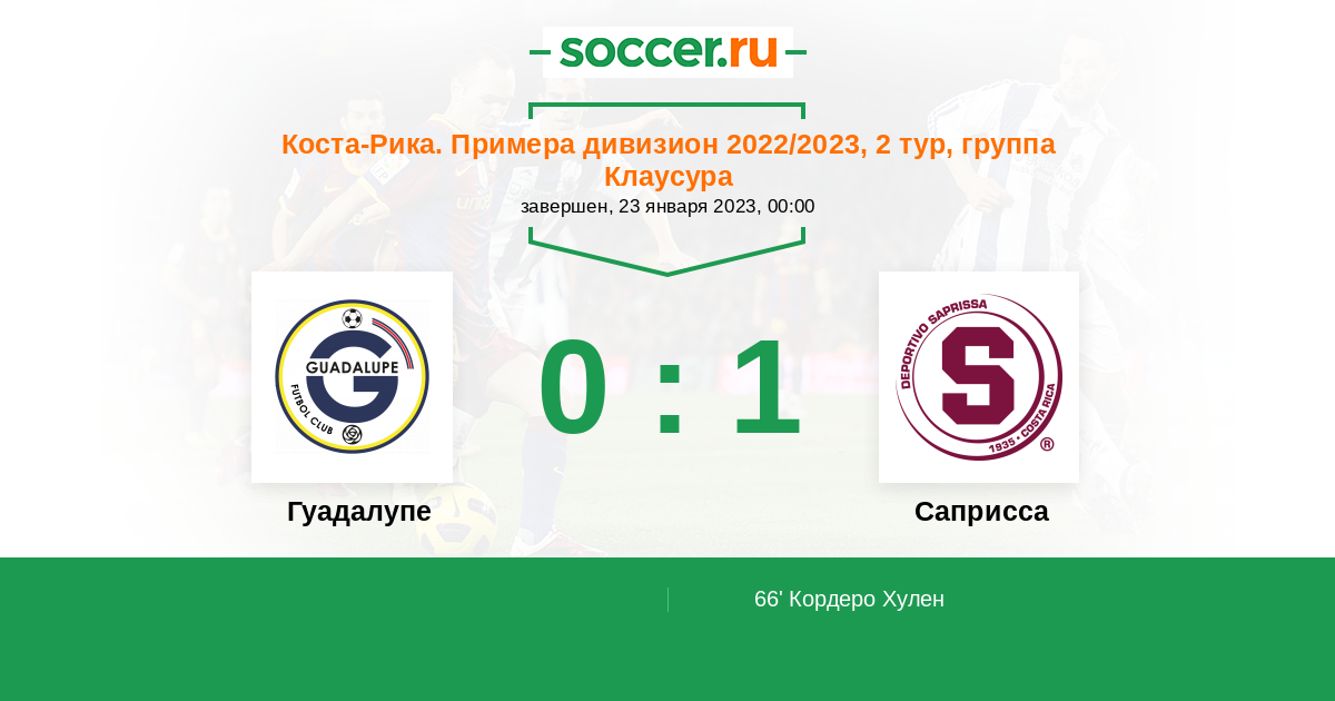 66' (0:1) Кордеро Хулен