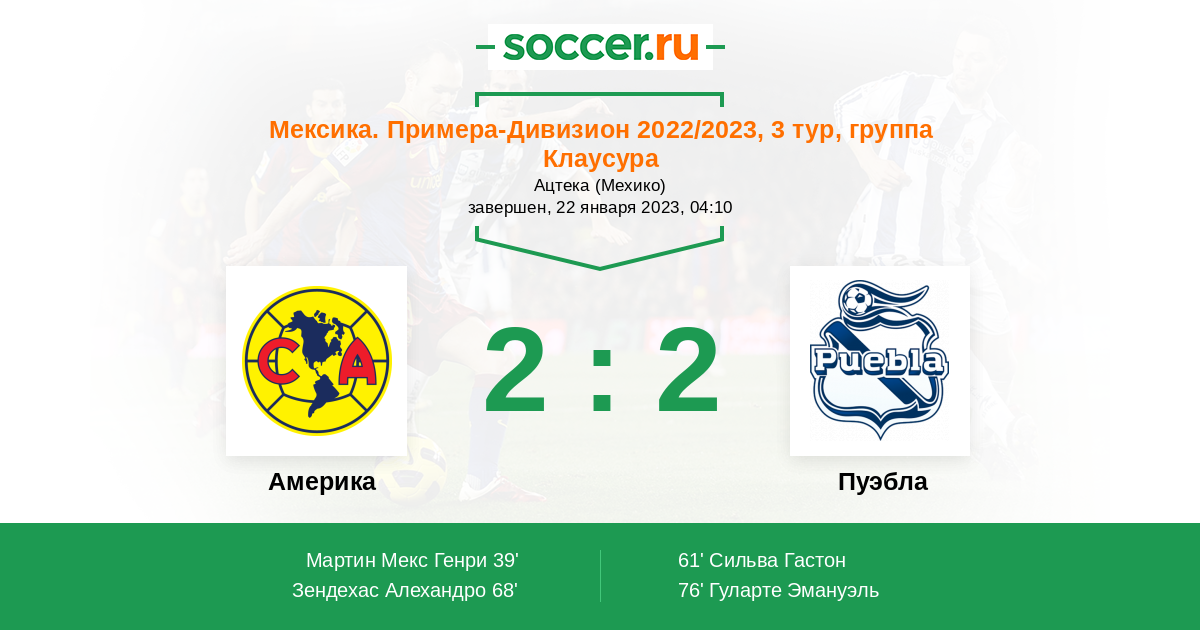 39' (1:0) Мартин Мекс Генри (21) (Зендехас Алехандро (17))