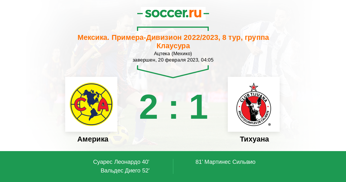 40' (1:0) Суарес Леонардо (32)