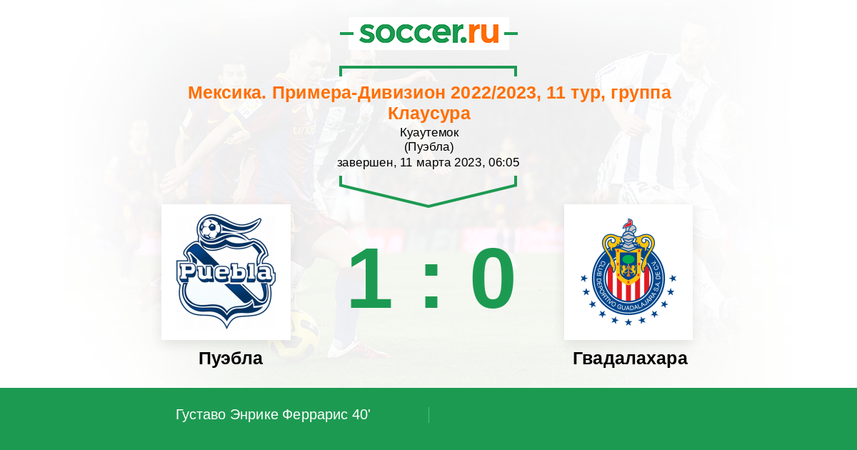 40' (1:0) Густаво Энрике Феррарис (2) (Сильва Гастон (21))