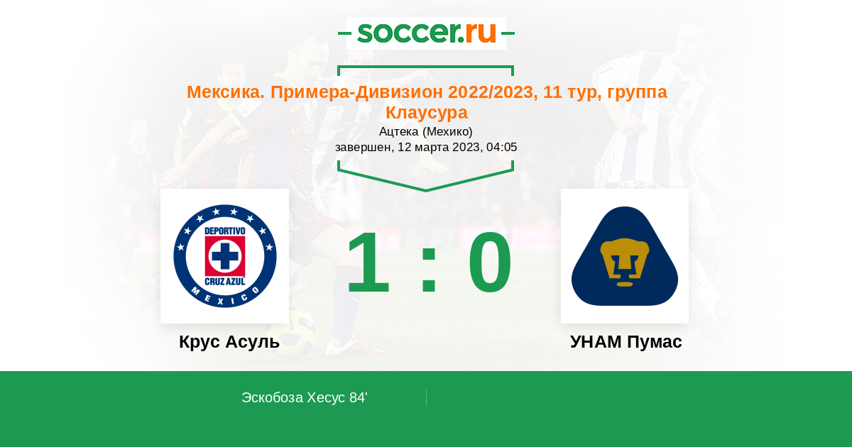 84' (1:0) Эскобоза Хесус (17) (Риверо Игнасио (15))