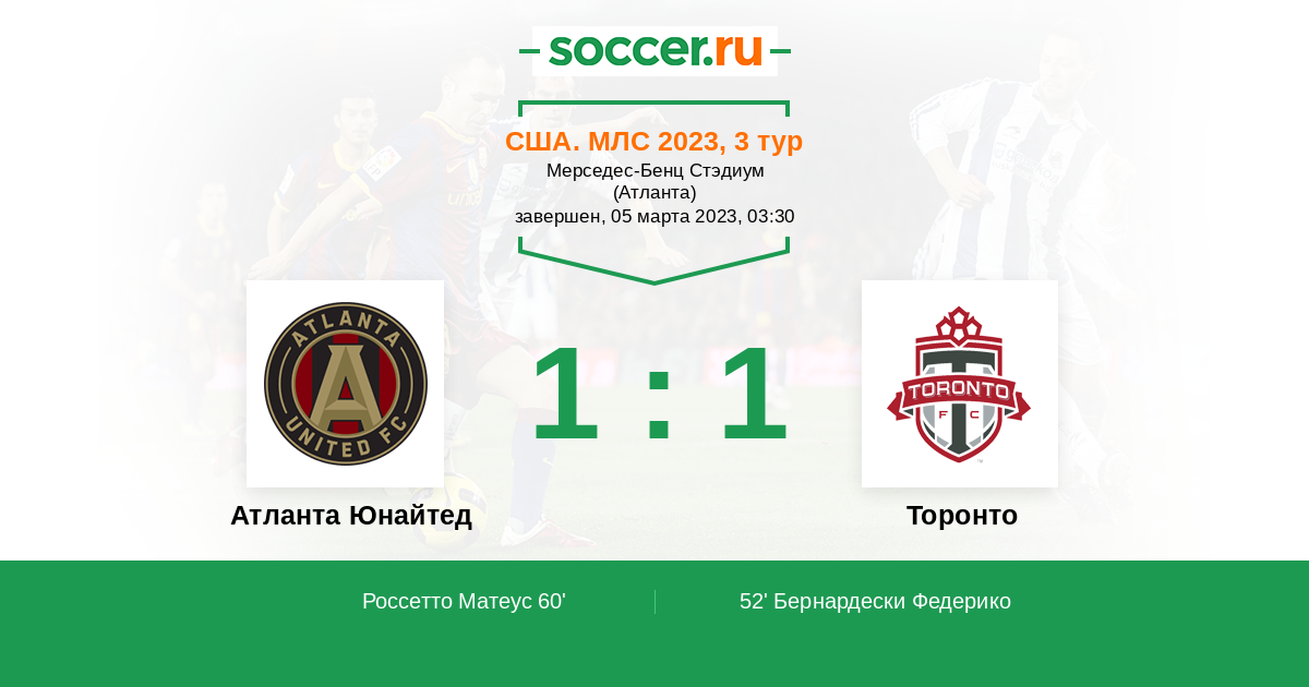 52' (0:1) Бернардески Федерико (10) (Брэдли Майкл (4))