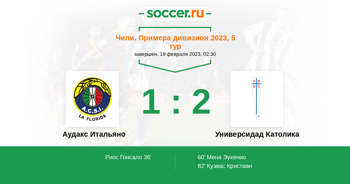 36' (1:0) Риос Гонсало (19)
