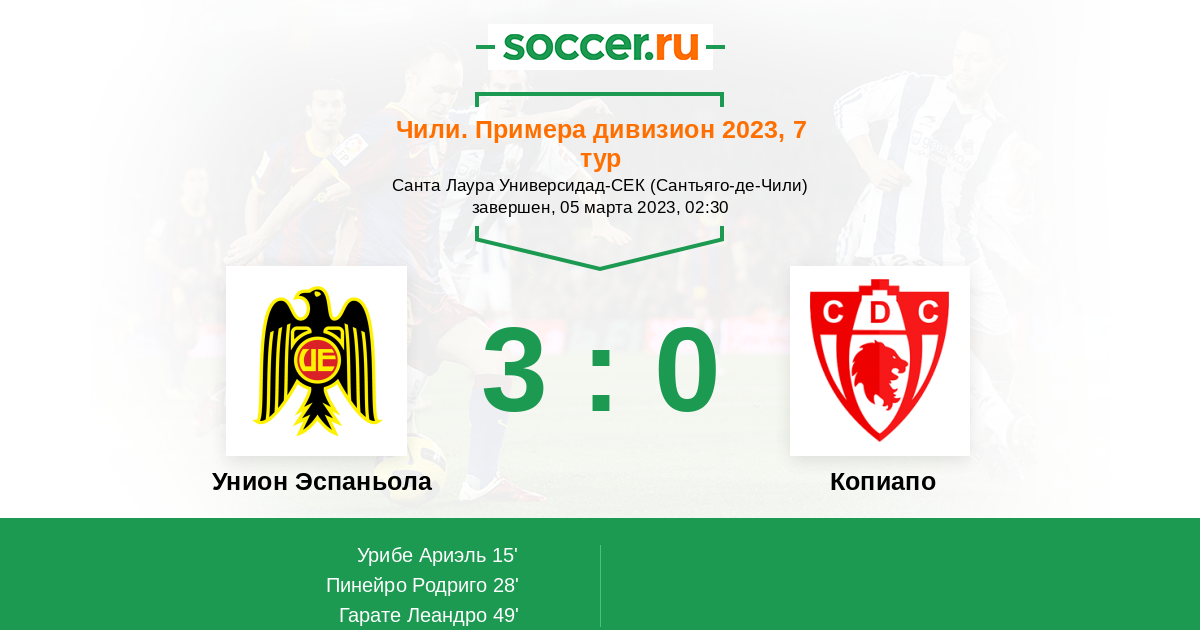 Запасные: 8 Лейтон Себастьян (с 46'), 27 Гальдамес Бенжамин (с 69'), 20 Конелли Висенте (с 69'), 21 Карвальо Брайан (с 69'), 24 Норамбуэна Габриэль (с 76'), 3 Видаль Валентин, 13 Эчаве Хуан