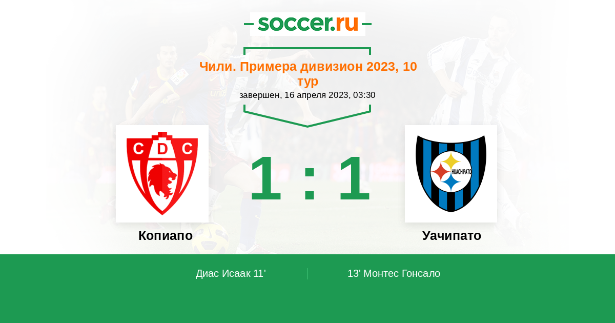 13' (1:1) Монтес Гонсало (8) (Мартинес Крис (23))