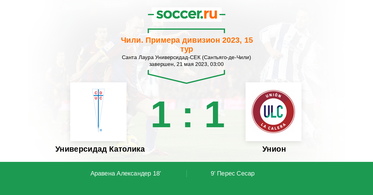 18' (1:1) Аравена Александер (18) (Пинарес Сезар (10))