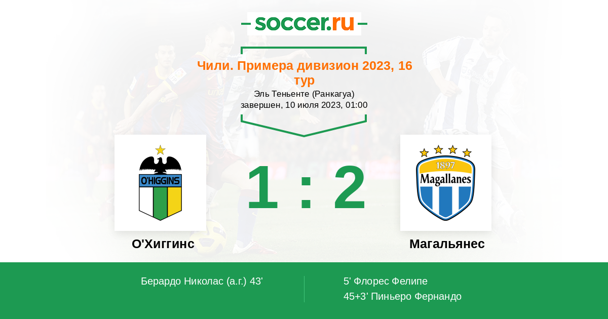 43' (1:1) Автогол Берардо Николас (6)
