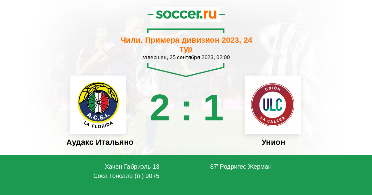 13' (1:0) Хачен Габриэль (32) (Соса Гонсало (9))