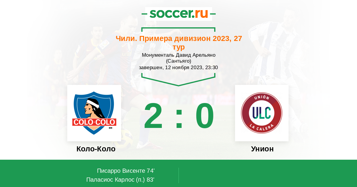 74' (1:0) Писарро Висенте (9) (Паласиос Карлос (7))