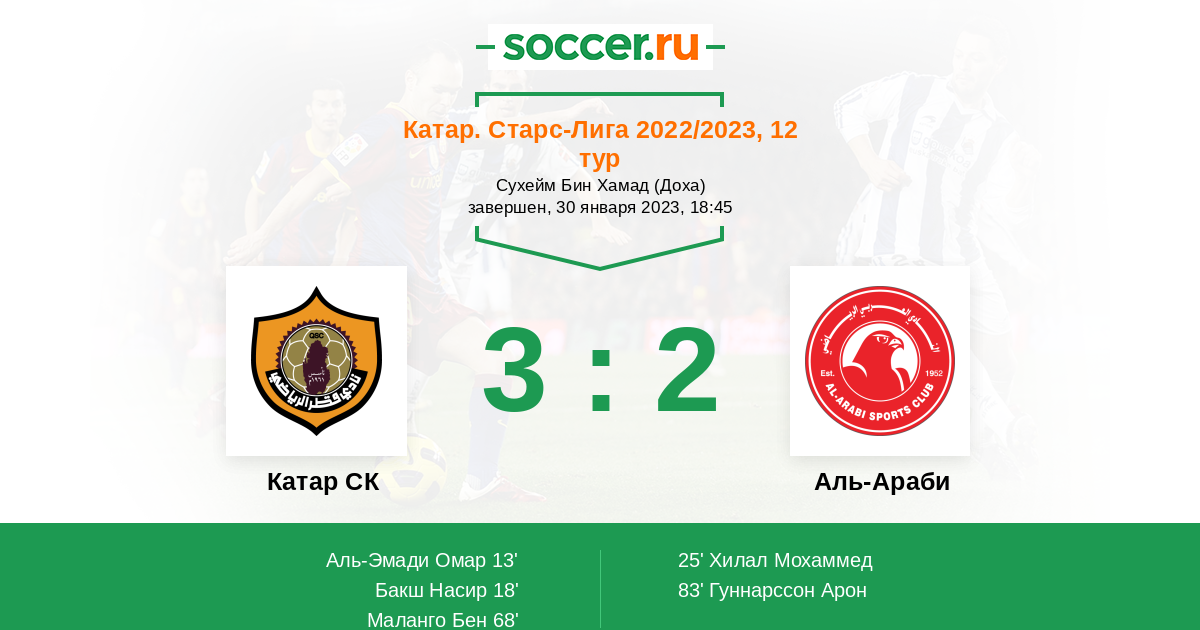 13' (1:0) Аль-Эмади Омар (4) (Сория Себастьян (23))