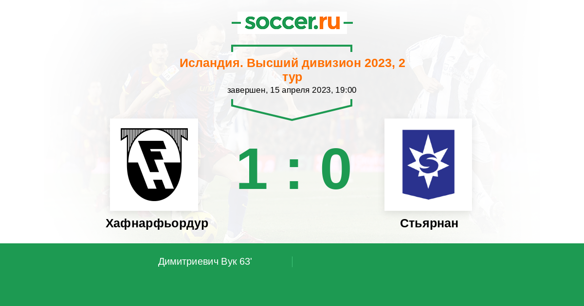 63' (1:0) Димитриевич Вук (29) (Финнбогасон Кьяртан (9))