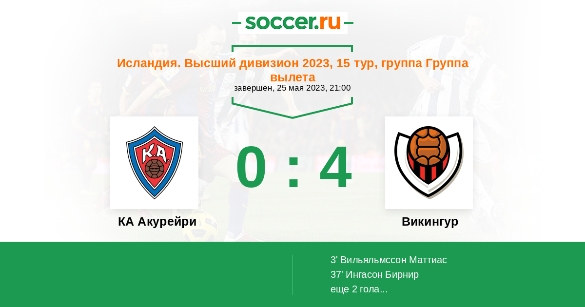 3' (0:1) Вильяльмссон Маттиас (27) (Ингасон Бирнир (18))