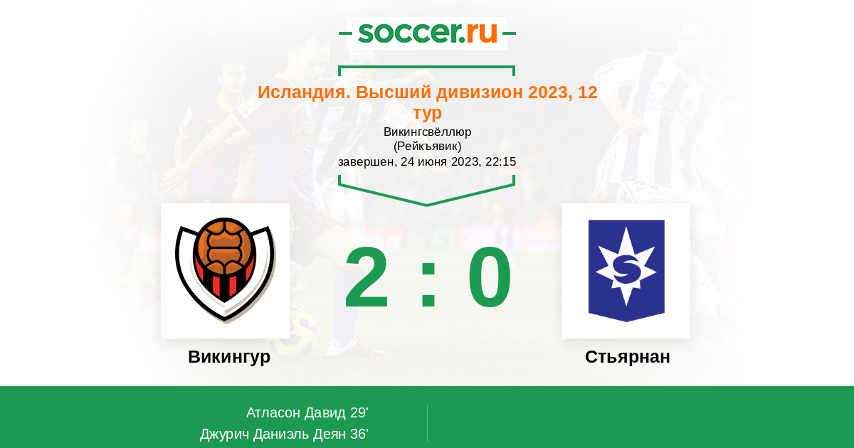 36' (2:0) Джурич Даниэль Деян (19) (Ингасон Бирнир (18))