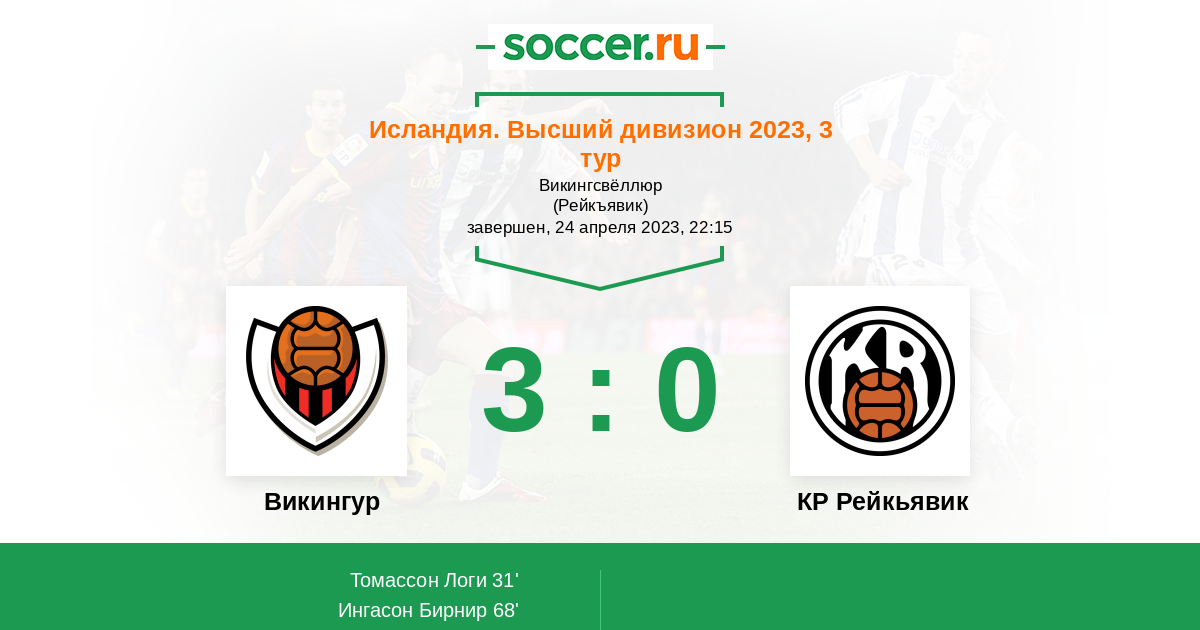 31' (1:0) Томассон Логи (3) (Сигурдссон Халлдур (12))