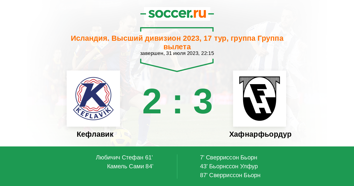 87' (2:3) Сверриссон Бьорн (10)
