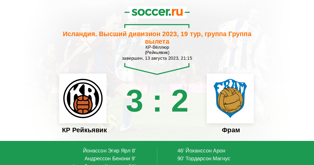 81' (3:1) Финнбогасон Кристьян (10) (Бьярнасон Теодор Эльмар (16))
