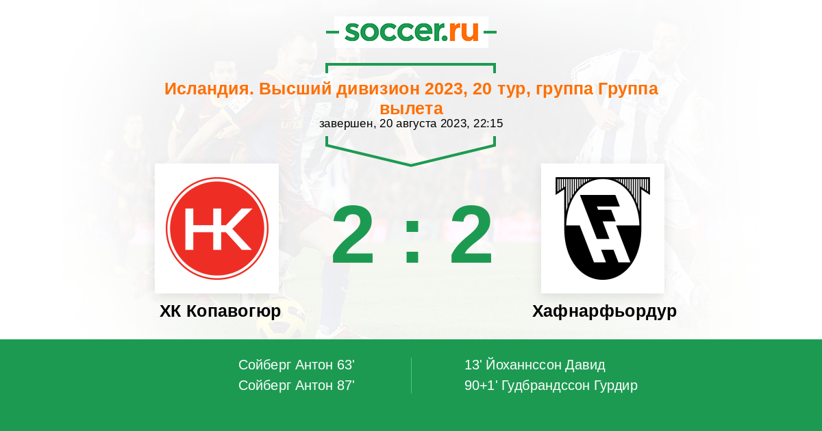 13' (0:1) Йоханнссон Давид (11) (Йонссон Видар Ари (23))
